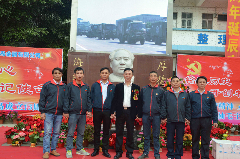 綠志島實業(yè)由來自湖南的朱祖生先生創(chuàng)業(yè)于2000年,由最初的錫渣冶煉廠經(jīng)過十來年的艱苦奮斗,現(xiàn)在公司產(chǎn)品包括焊錫條、焊錫絲、焊錫膏,助焊劑,清洗劑,防銹劑,潤滑油等。綠志島實業(yè)的發(fā)展,在以毛主席思想為信仰的指引下突飛猛進(jìn),在“吃水不忘挖井人”的感恩心下穩(wěn)步發(fā)展。為了鞏固毛主席思想作為綠志島的信仰核心,綠志島于2012年12月26日從泰山迎接來毛主席泰山石像,并立于公司內(nèi)部。自此,綠志島每年12月26日都會齊聚眾多認(rèn)同毛主席的朋友,在綠志島內(nèi)緬懷紀(jì)念毛主席。2017年是綠志島舉辦毛主席誕辰第六年,為此和志同道合的朋友們齊聚一堂,共慶毛主席誕辰。