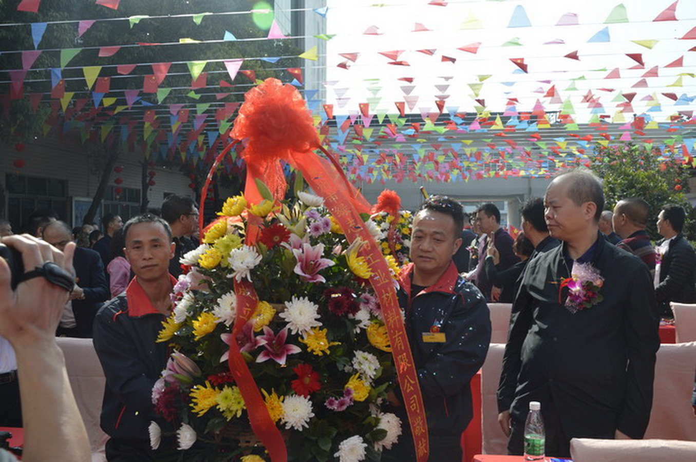 ▲綠志島總經理賴高平先生為嘉賓寫花籃語